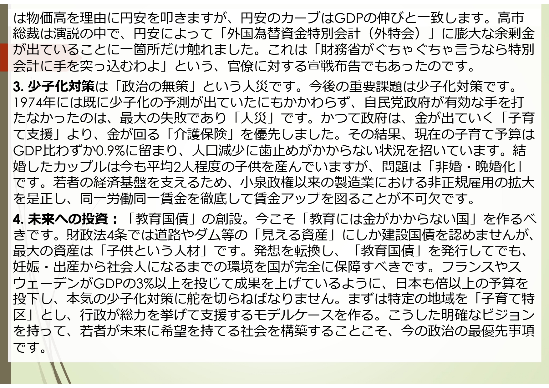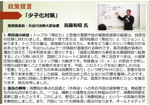 〇政策提言「解散総選挙総括、少子高齢化社会問題」 高藤和昭塾長 →映像はこちら