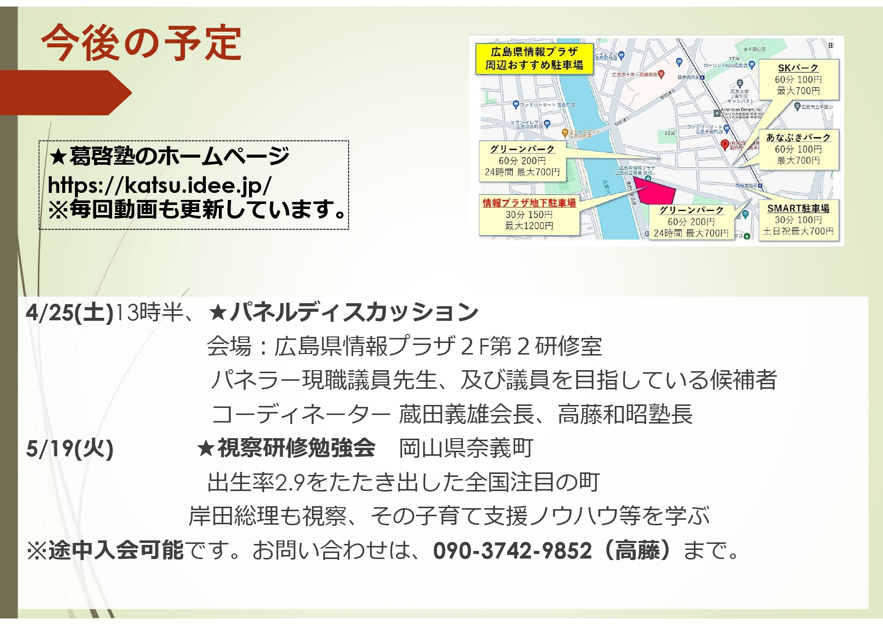 ※途中入会可能です。お問い合わせは、090-3742-9852(高藤)まで。